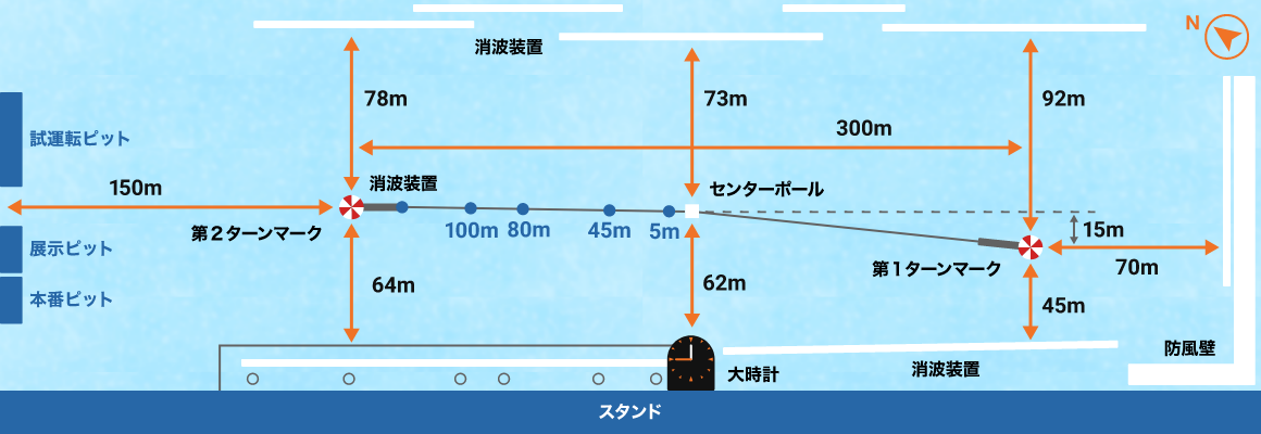 インコースの強さは数値にも表れており、2連対率は70%・3連対率は80%を超えている。インの強さを支えているのは、スタートライン上のコース幅が62mと全国でも有数の広さ。アウトの選手は1マークが遠く届きにくい。その間にインが逃げているというパターンが多くなるためである。