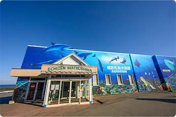 越前松島水族館は〝みて、ふれて、楽しく学べる〟がテーマの体験、体感型水族館。3頭のバンドウイルカによるイルカショーは楽しさいっぱい、迫力たっぷりのパフォーマンスで大人気。