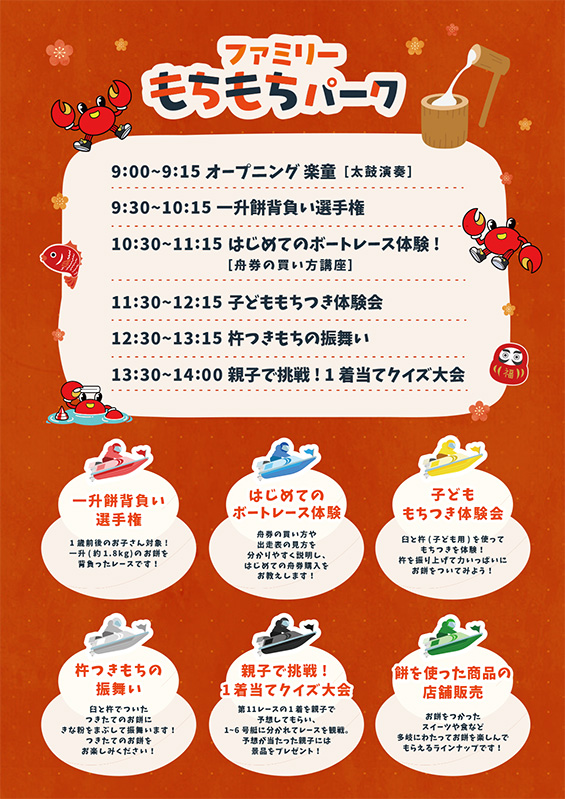 9:00~太鼓演奏、9:30~一升餅背負い選手権、11:30~子どももちつき体験