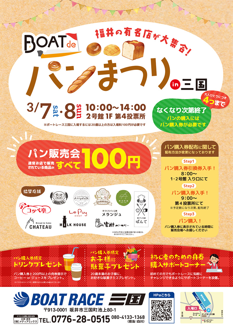 三国未確定舟券500円以上提示でお一人様につき参加券1枚配布