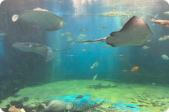 他にも写真も撮れるペンギンのお散歩やキュートなカワウソの〝モグモグタイム〟をみて、癒されてみてはいかかでしょうか。さらにアザラシやサメ、エイ、巨大なタコ、ナマコ、ドクターフィッシュなどに触れて楽しだり、ウミガメや魚への餌やりもできます。